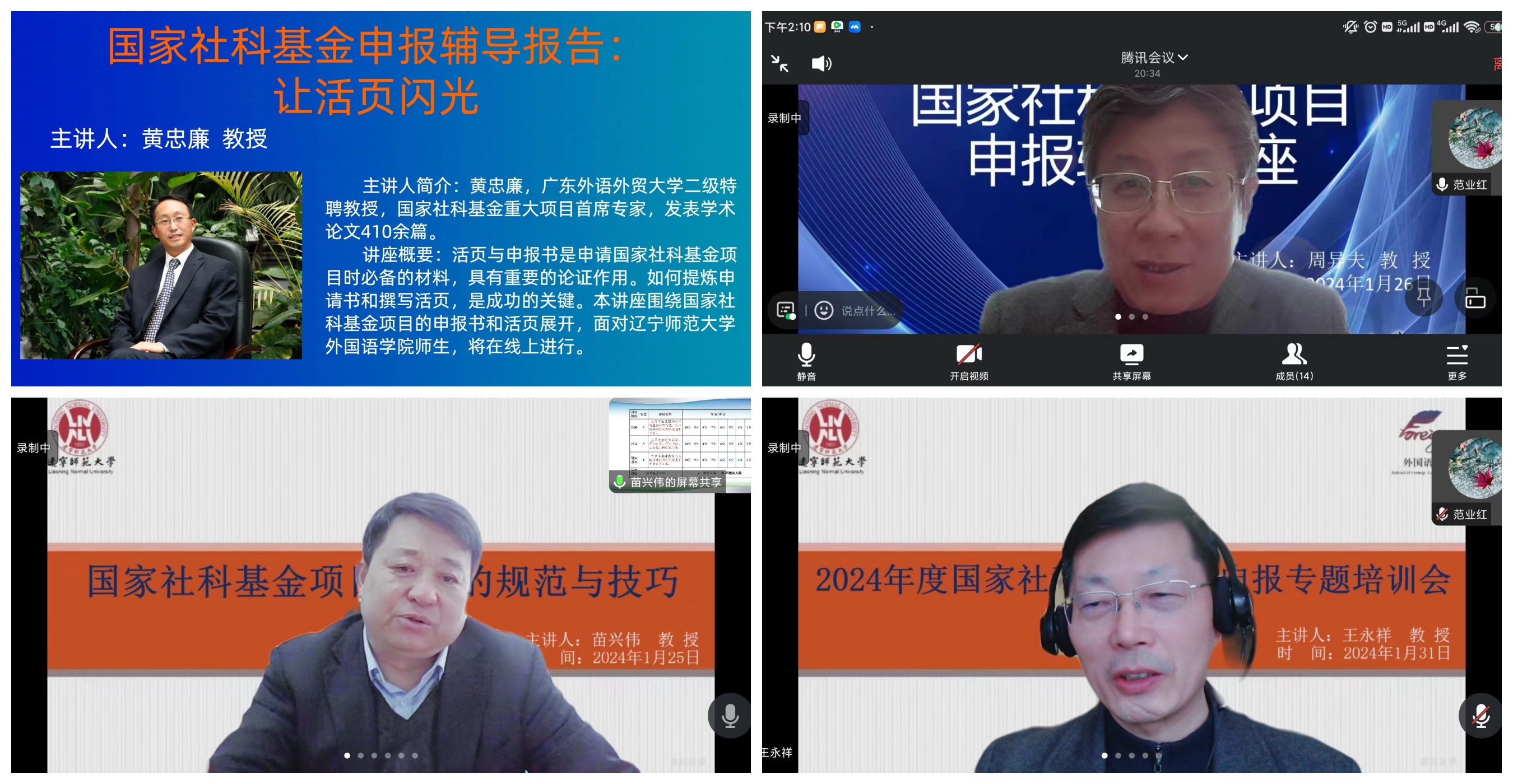 为提升开元体育官方网站登录入口教师学术研究水平,切实做好2024年度国家社科基金申报工作,开元体育官方网站登录入口特邀广东外语外贸大学博士生导师黄忠廉教授、北京师范大学博士生导师苗兴伟教授、北京外国语大学博士生导师周异夫教授、南京师范大学博士生导师王永祥教授四位专家分批次为开元体育官方网站登录入口教师进行线上专题辅导报告。