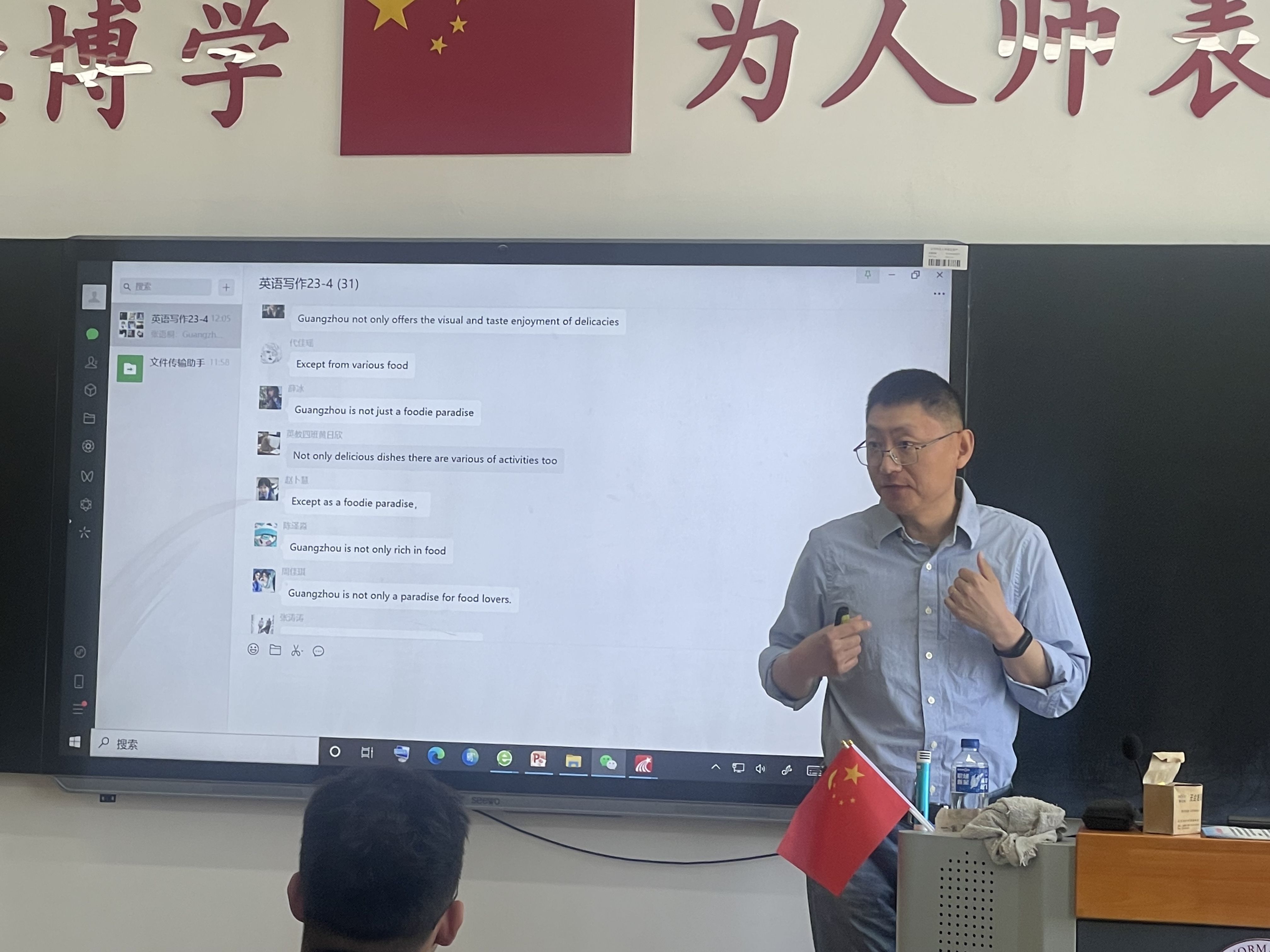 5月8日,开元体育中国官方网站“本科教学质量月”活动之教师公开课在外语楼311教室举行。本次公开课由英语系青年教师郑桥讲授,课程名称为《英语写作(一)》,授课对象为23级英语(师范)专业本科生。学院教学督导、教研室主任及青年教师参加了此次公开课,共同观摩学习和交流研讨。