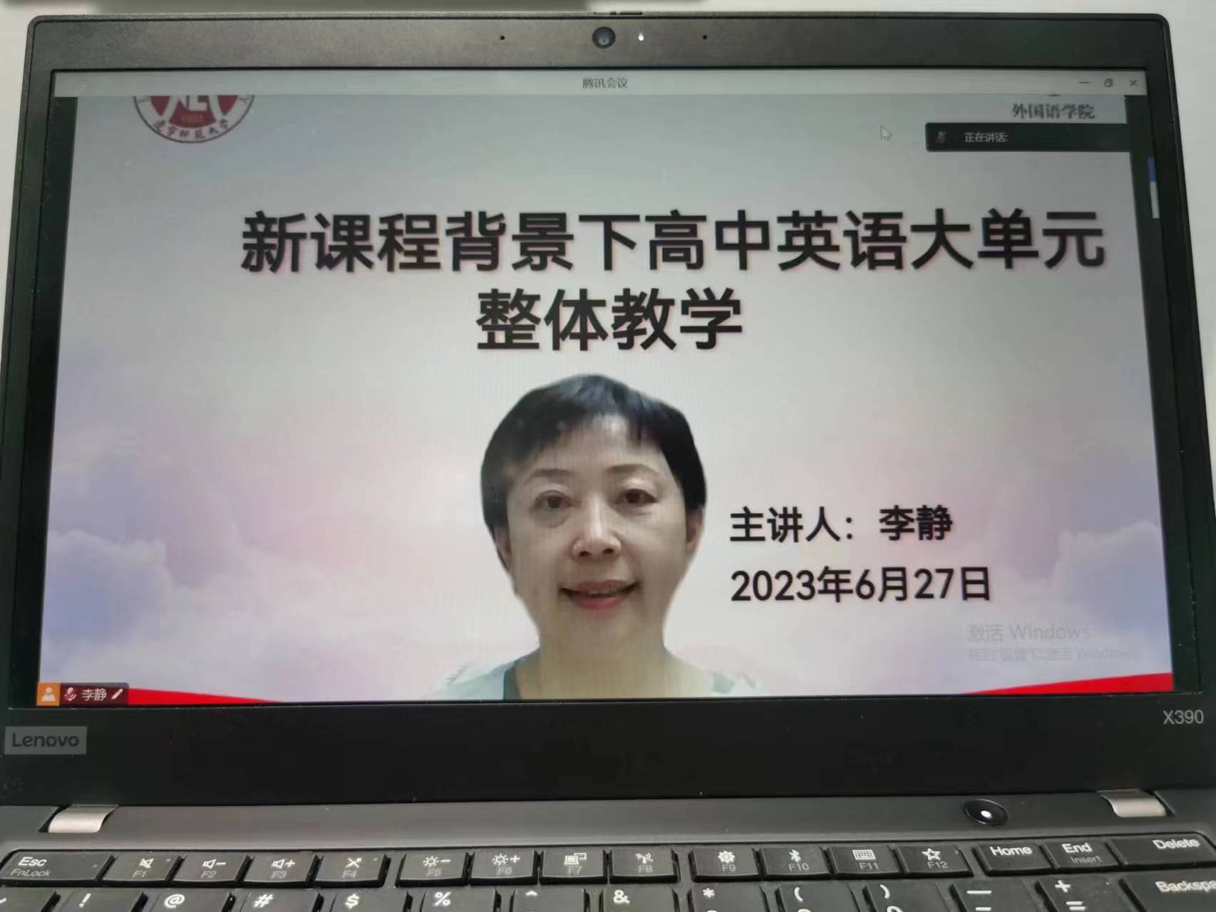 2023年6月27日,开元体育官方网站登录入口邀请辽宁教育学院研究中心李静老师开展题为“新课程背景下高中英语大单元整体教学”的线上学术讲座。本次报告会由学院副院长范业红老师主持。