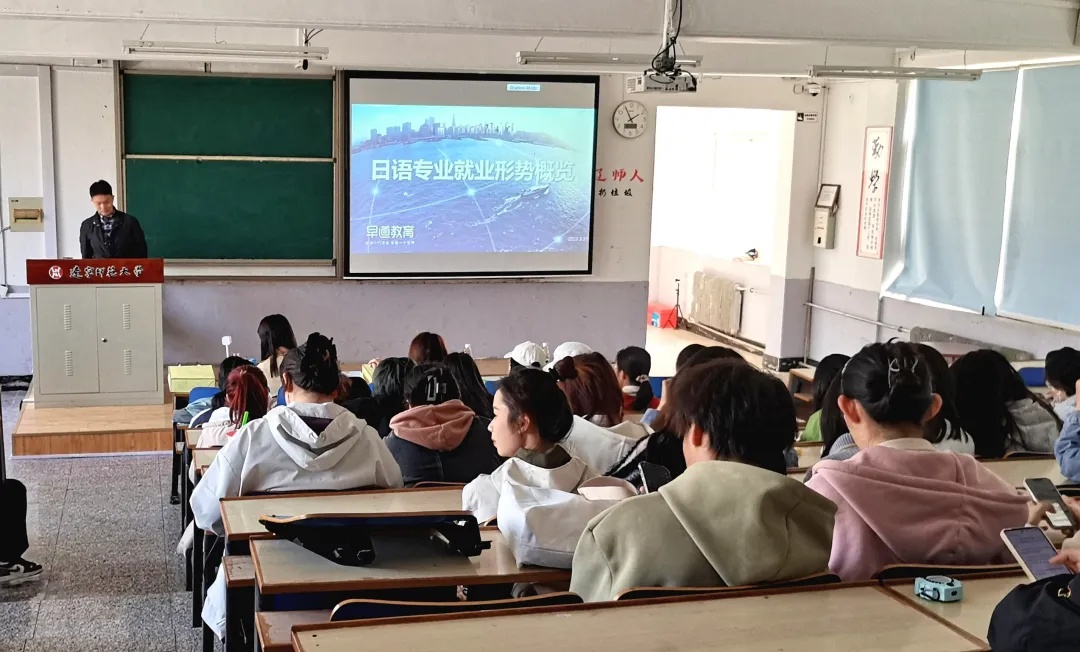 祁老师从职业规划的话题着手,以问答形式引出近几年高校招聘数据。通过直观的数据图,让同学们了解到日语人才在求职方面面临形势。他提出,日语专业学生要充分利用专业优势,将个人优势与职业规划相结合,理性进行就业岗位的选择。在学习过程中要抓住重点,了解企业招聘的硬性标准,达到目前就业市场上的硬性要求。同时,同学们还要利用课余时间去丰富自己,拓宽能力领域,设定更高的目标,努力成为高质量的复合型人才。