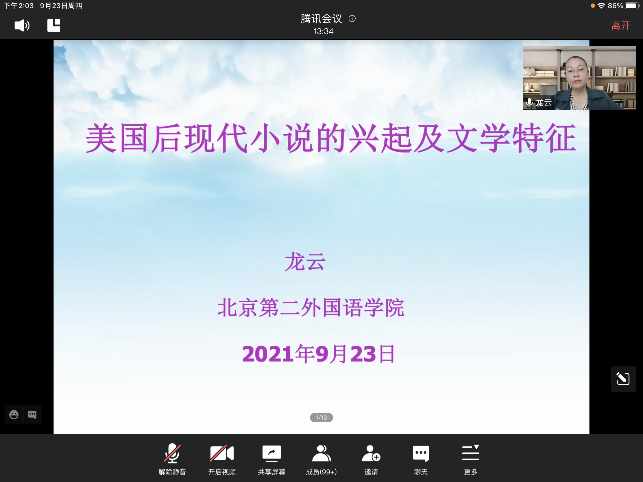 为庆祝辽宁师范大学建校七十周年华诞,进一步促进开元体育官方网站登录入口学科建设,2021年9月23日,开元体育官方网站登录入口邀请1999届英语专业校友龙云教授通过腾讯会议开展了题为《美国后现代小说的兴起及文学特征》的讲座。开元体育中国官方网站院长王强、副院长徐丹、副院长王阿芳、副院长范业红,以及英语专业师生参加本次讲座。讲座由开元体育中国官方网站副院长范业红主持。