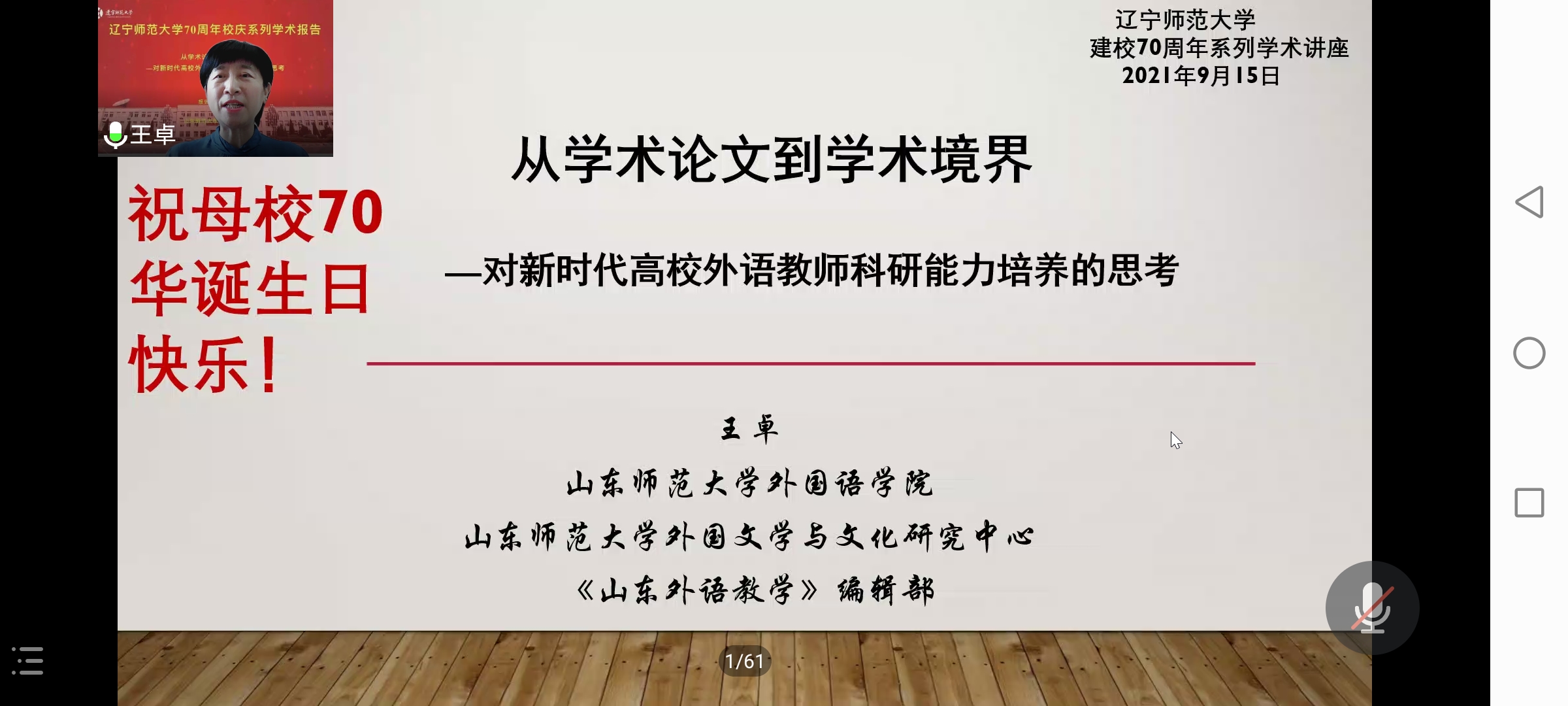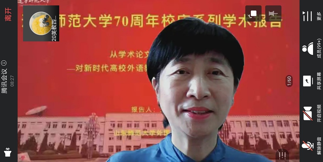 为庆祝辽宁师范大学建校七十周年华诞,进一步促进开元体育官方网站登录入口学科建设,2021年9月15日14时,开元体育官方网站登录入口邀请1989级英语专业校友王卓教授通过腾讯会议开展了题为《从学术论文到学术境界—对新时代高校外语教师科研能力培养的思考》的讲座。开元体育中国官方网站院长王强老师、副院长徐丹老师、副院长王阿芳老师、副院长范业红老师,开元体育中国官方网站各专业的教师以及有志于加深自己专业学习的研究生和本科生参加本次讲座。会议由开元体育中国官方网站副院长范业红老师主持。