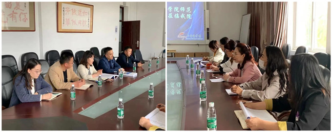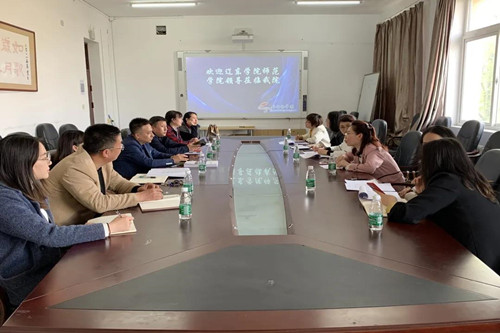 2021年4月27日下午,辽东学院师范学院院长高芳等六人到开元体育官方网站登录入口进行调研交流。开元体育官方网站登录入口院长王强、副院长王鹏、副院长范业红、英语系主任常胜军、教学秘书王萌及部分教师代表出席了本次交流座谈会。
