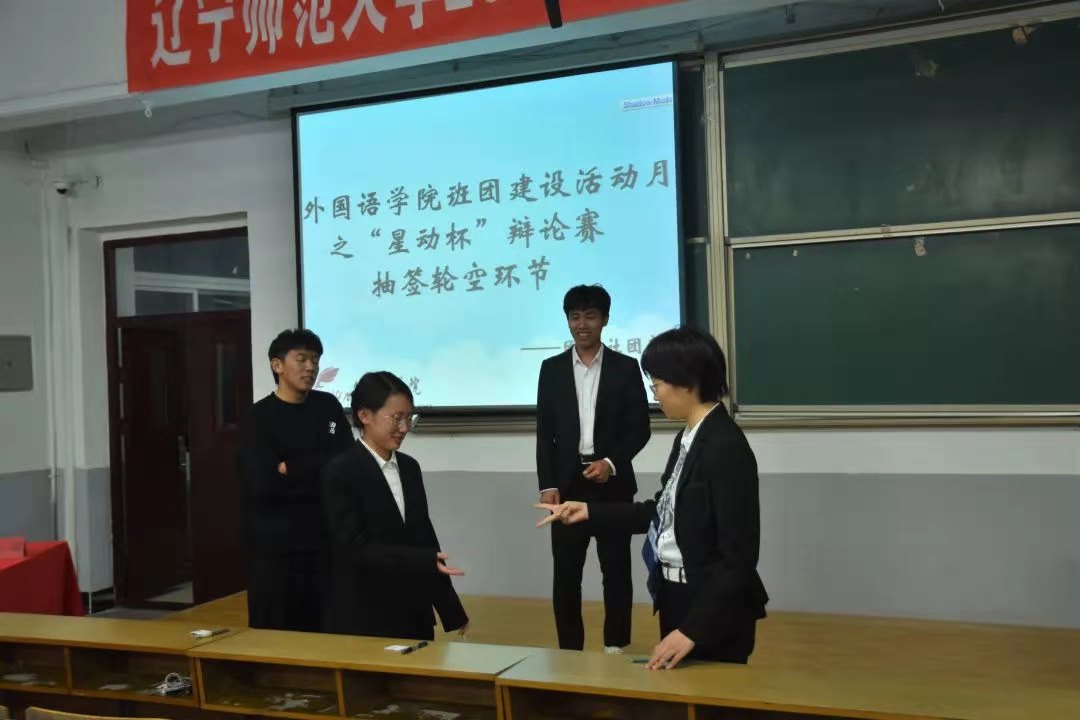 经过紧张激烈的唇枪舌战,进入了第二环节——即兴辩论。经过抽签轮空环节,英语(师范)三班获得幸运签,直接进入决赛。法语班和英语(师范)一班稍事准备,积极投入到下一轮的辩论比拼之中。