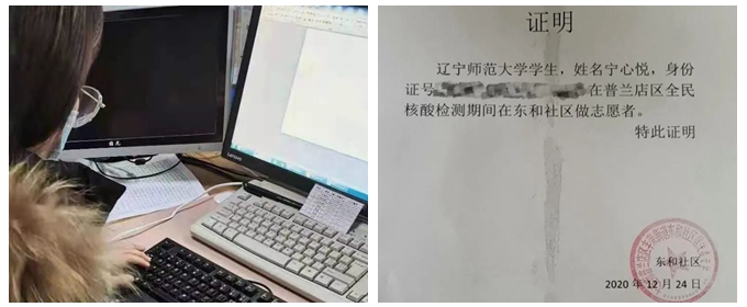 没想到在学校学习的计算机知识,在这次志愿服务中“偶然”有了“用武之地”;不仅大大提高了工作效率,在两天之内便完成了全村居民的检测工作,同时也为后续村镇核酸检测的工作提供了方法。