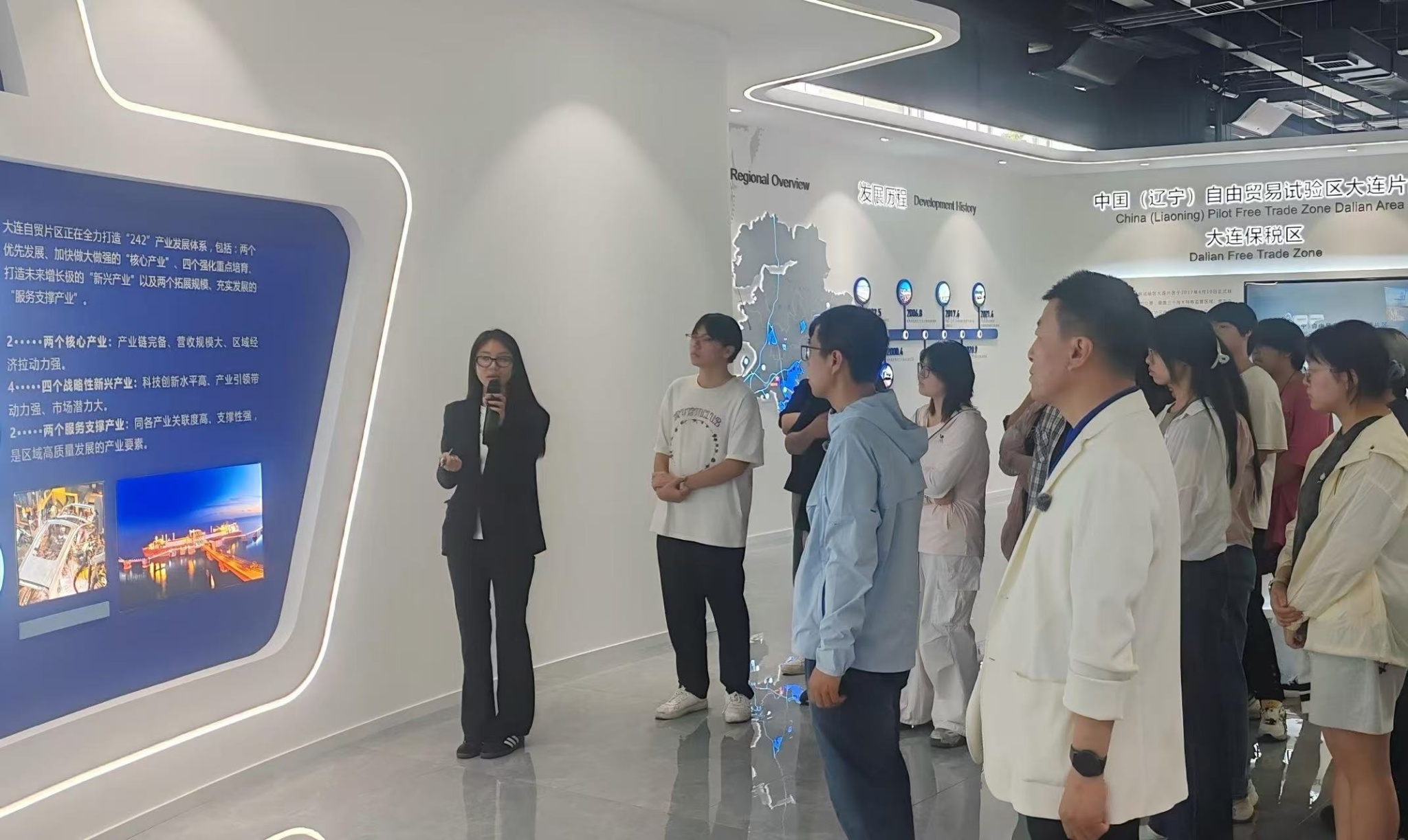 接着来到RCEP服务中心,师生们深入了解RCEP政策在大连的发展历程与未来趋势,深刻认识到区域经济合作对国际贸易的深远影响,进一步拓宽了国际视野。