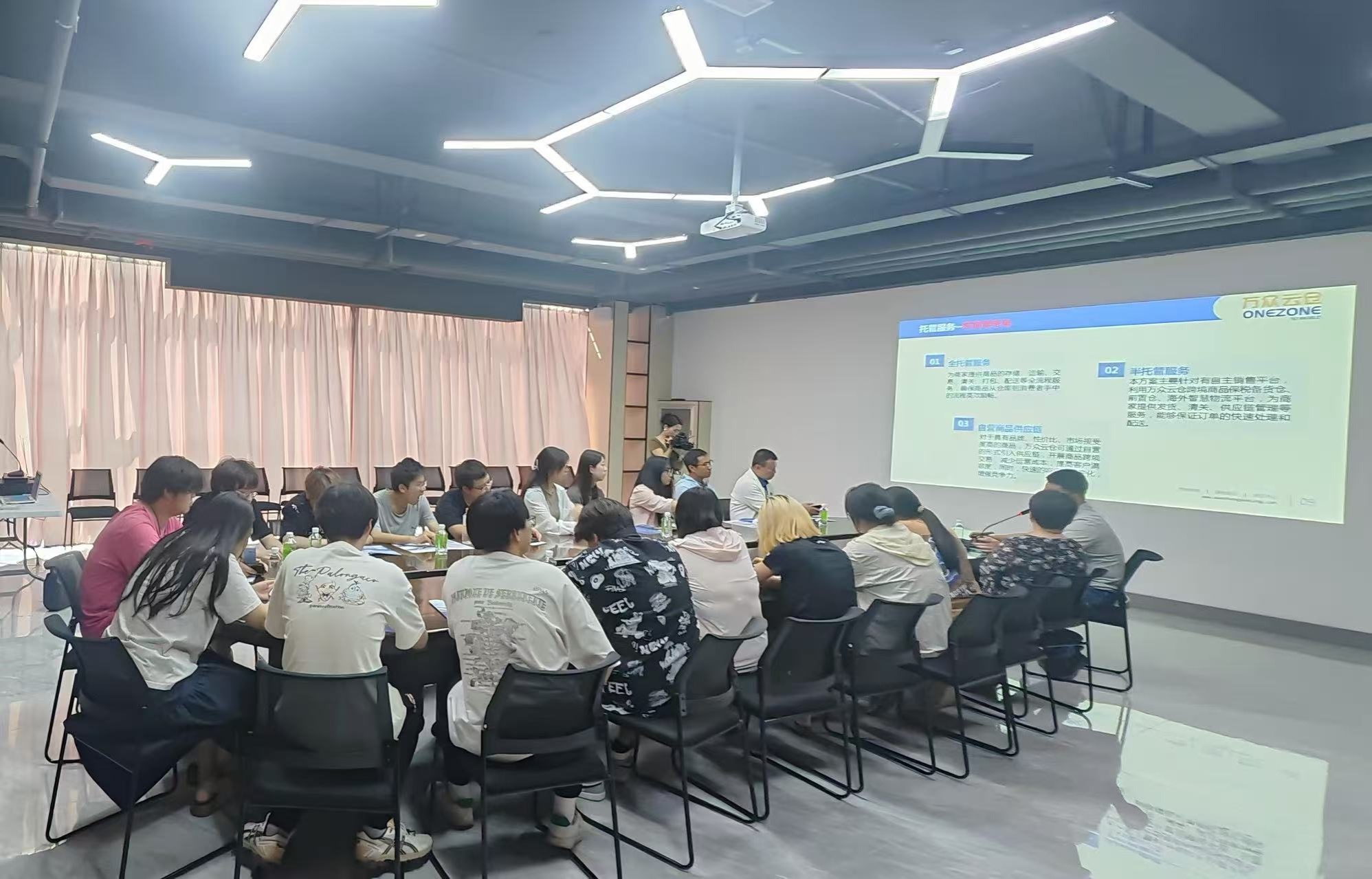 实践活动最后一站来到大连万众城国际会展中心。通过万众云仓跨境电商平台公司总经理连世超的介绍,同学们系统学习了跨境电商的发展历程与运营模式。座谈交流中,老师和同学们深入探究这一新兴业态的发展前景。交流会议上,连总经理耐心为同学们答疑解惑,进一步深化了同学们对专业知识的理解与应用以及未来的学习努力方向。